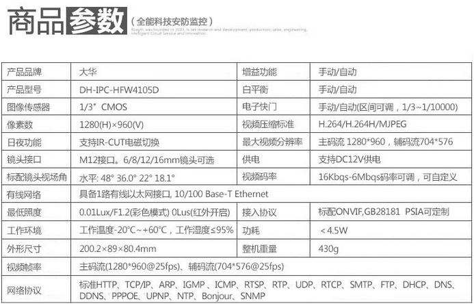 大華紅外防水高清攝像機(jī)